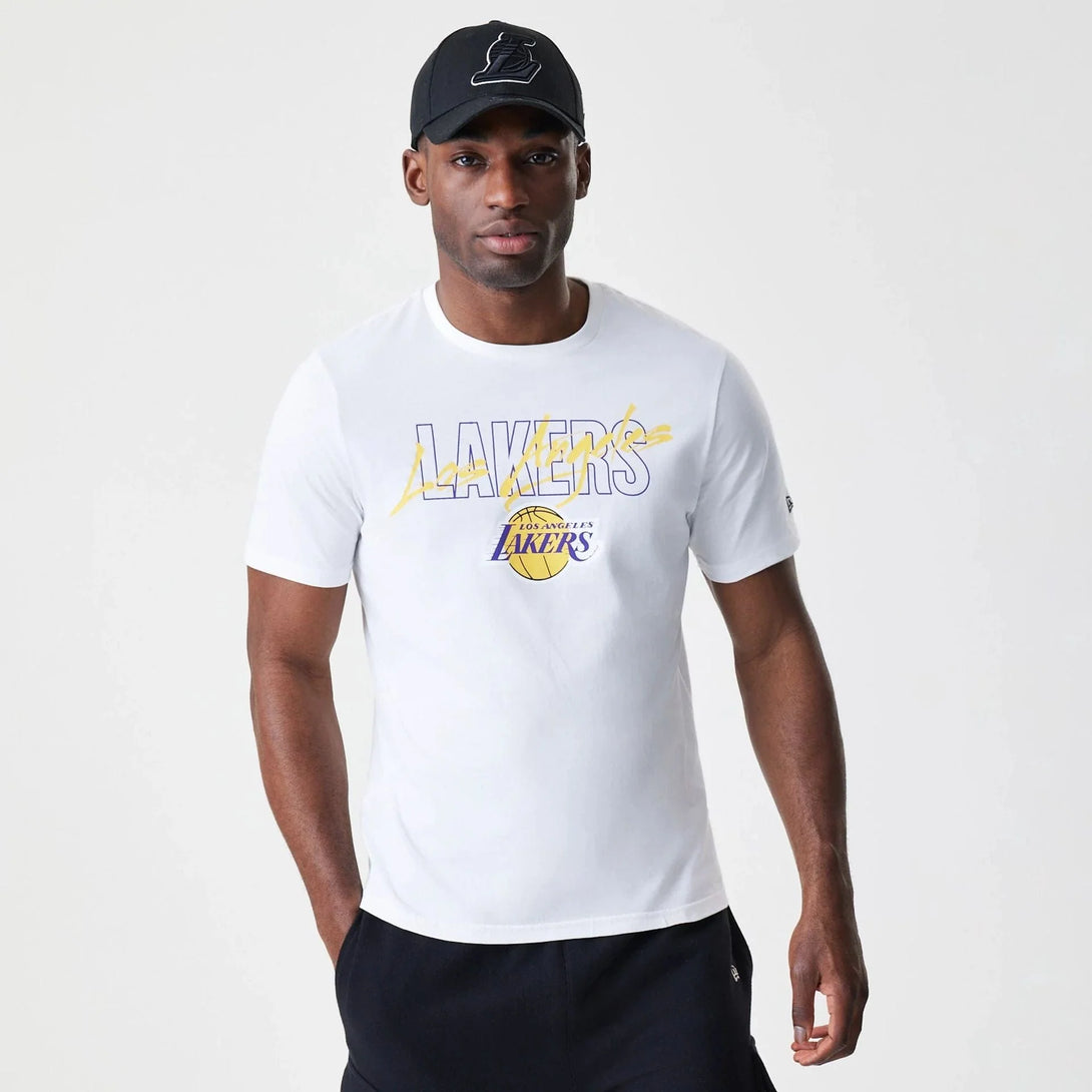 New Era LA Lakers NBA Script White póló